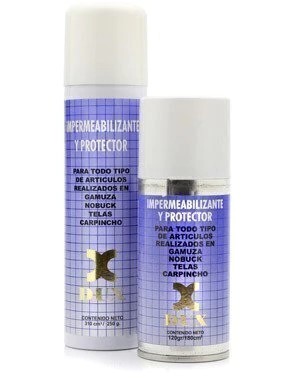 Este producto ha sido concebido para proteger gamuza, nobuck, carpincho y telas de manchas de aceite, agua, gaseosa, etc. Tiene una excelente performance en el impermeabilizado de camperas, carpas, pilotos, tapizados, calzados, etc.